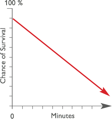 When ventricular fibrillation occurs, immediate defibrillation is the definitive treatment. For every single minute without defibrillation, the chances of survival drop by 7% - 10%. 4,5 After 10 minutes without defibrillation there is almost no realistic chance of survival.